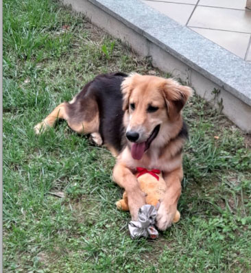 Dora è dolcissima, sempre in cerca di attenzioni, giocherellona, bravissima al guinzaglio e ben socializzata con l’uomo.