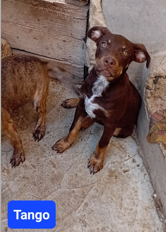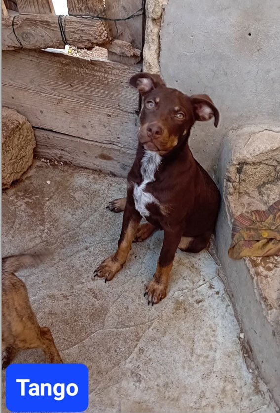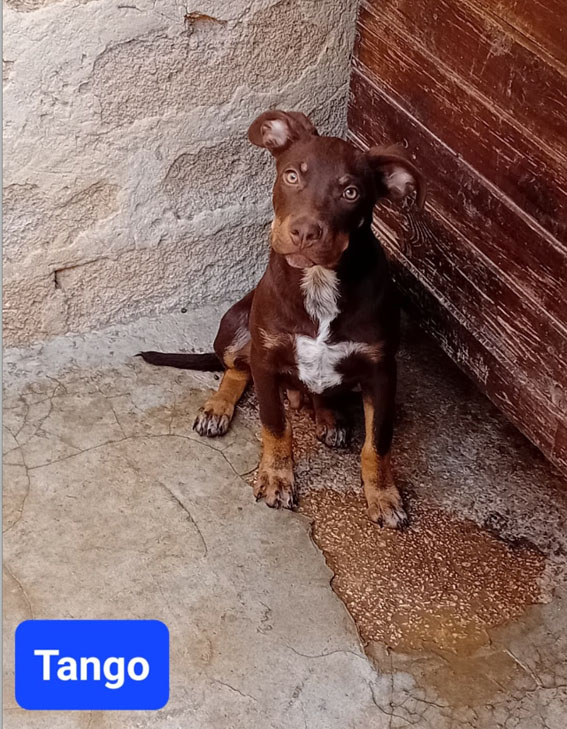 Tango è un cucciolo di 5 mesi, futura taglia media, incrociato con un Pitbull.