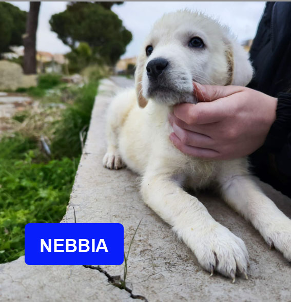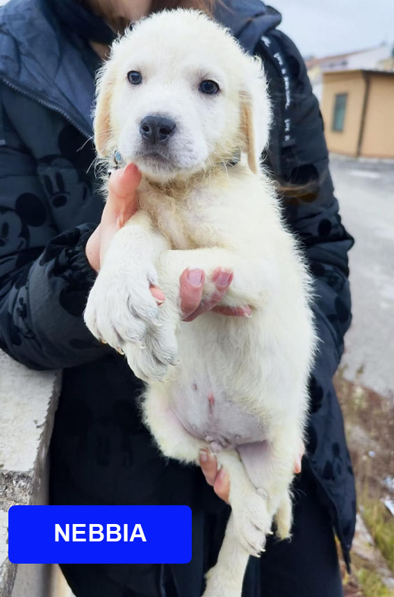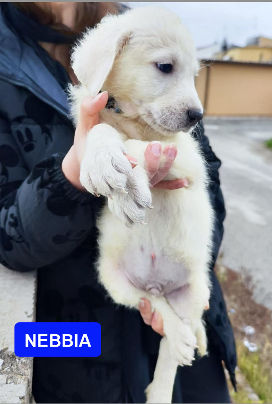 Nebbia è un cucciolo di 3 mesi, futura taglia media, incrociato con un maremmano.