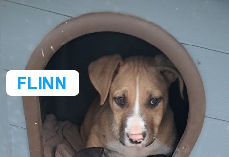 Flinn è un cucciolo di 3 mesi, futura taglia media, incrociato con un Molossoide.