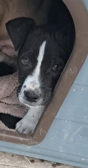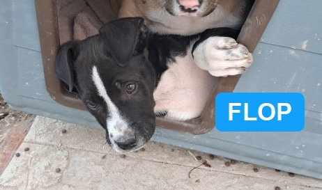 Flop è un cucciolo di 3 mesi, futura taglia media, incrociato con un Molossoide.