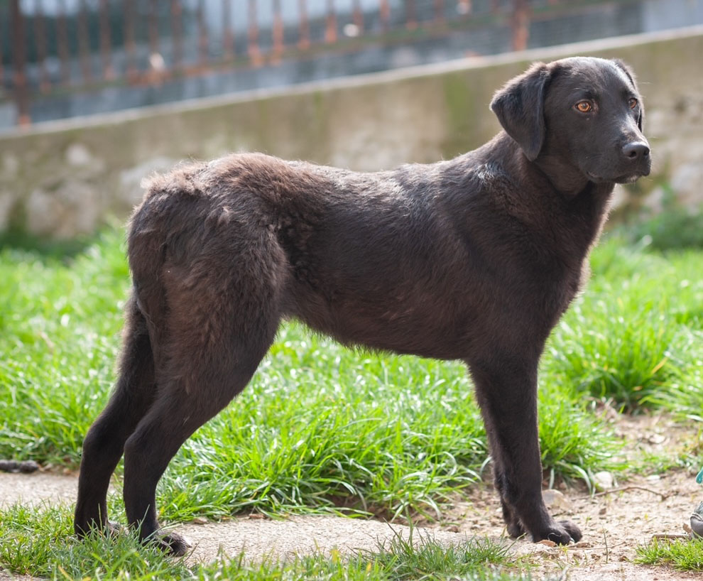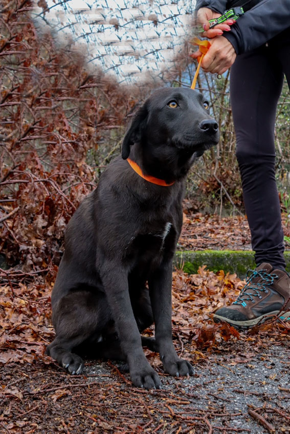 Rio è un cucciolo di 10 mesi, futura taglia medio contenuta (ora pesa 13 Kg), incrociato con un Labrador.