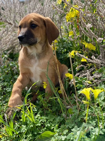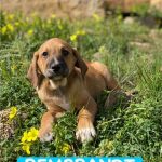 Rembrandt è un cucciolo di 65 giorni, futura taglia medio contenuta, incrociato con un Segugio.