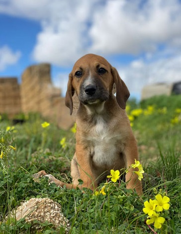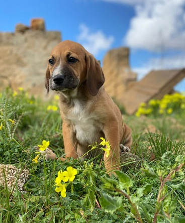 Van Gogh è un cucciolo di 65 giorni, futura taglia medio contenuta, incrociato con un Segugio.