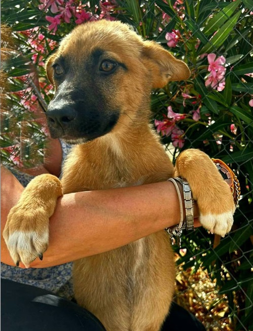 Delia è una cucciola di 5 mesi, futura taglia media, incrociata con Belga Malinois.