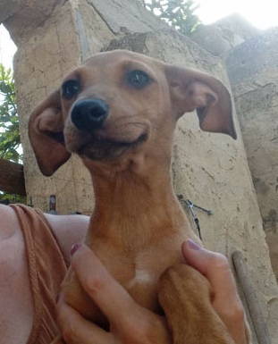 Lele è un cucciolo di 3 mesi, futura taglia piccola (ora pesa 3 kg), incrociato con un Pinscher.