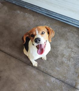 Paco è un cagnolino di 4 anni, taglia medio contenuta, incrociato con un Beagle.