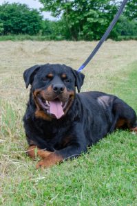 Rex è un cucciolone di 3 anni e mezzo, taglia medio/grande, incrociato con un Rottweiler.