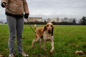 Gina è una cagnolina di 4 anni (nata il 01/08/2021), taglia media, incrociata con un Bracco Italiano.