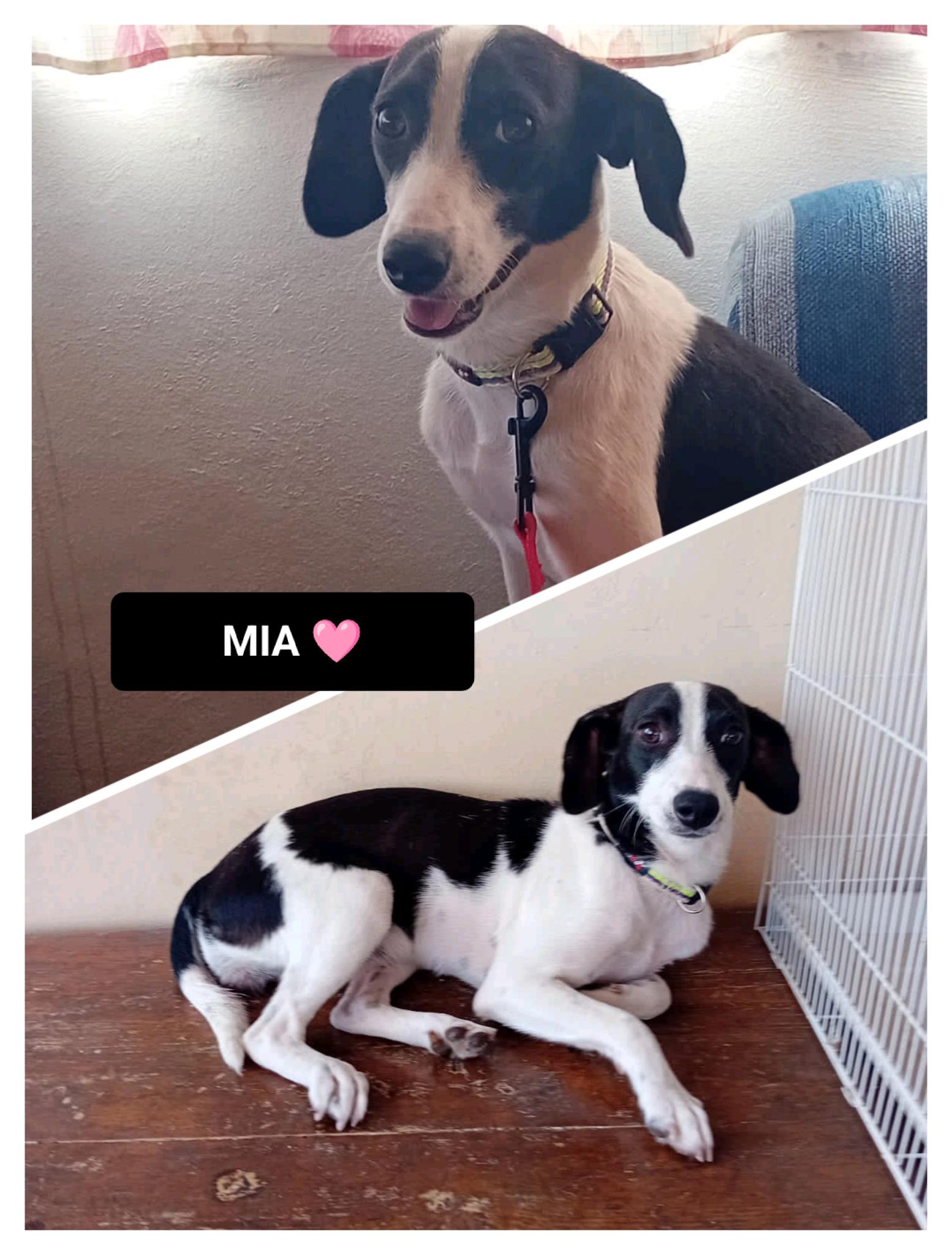 Mia è una cucciola di 7 mesi (nata il 15/02/2025), futura taglia piccola (ora pesa 7Kg), bellissimo meticcio.